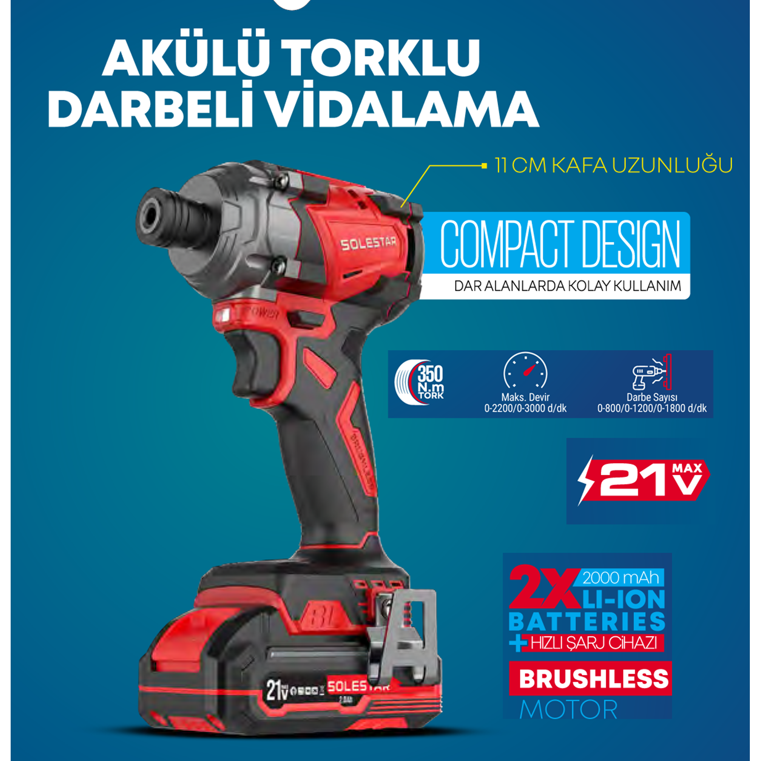 (STR1986)(SOLESTAR) AKÜLÜ TORKLU DARBELİ VİDALAMA 350 N (11 CM-21V)